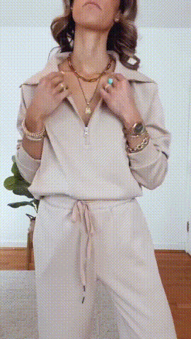 Casual Zipper Long Sleeve Hoodie and Wide Leg Pants Two-Piece Set